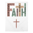 FAITH scriptures swaddle baby blanket. Perfect to decorate your baby's nursery and have available during their naps. As such, the 100% jersey polyester that makes up the custom baby swaddle blanket is incredibly soft to the touch. Made in pre-constructed formatting, these coverings measure 30” x 40”. When washing, use cold water and tumble drying.