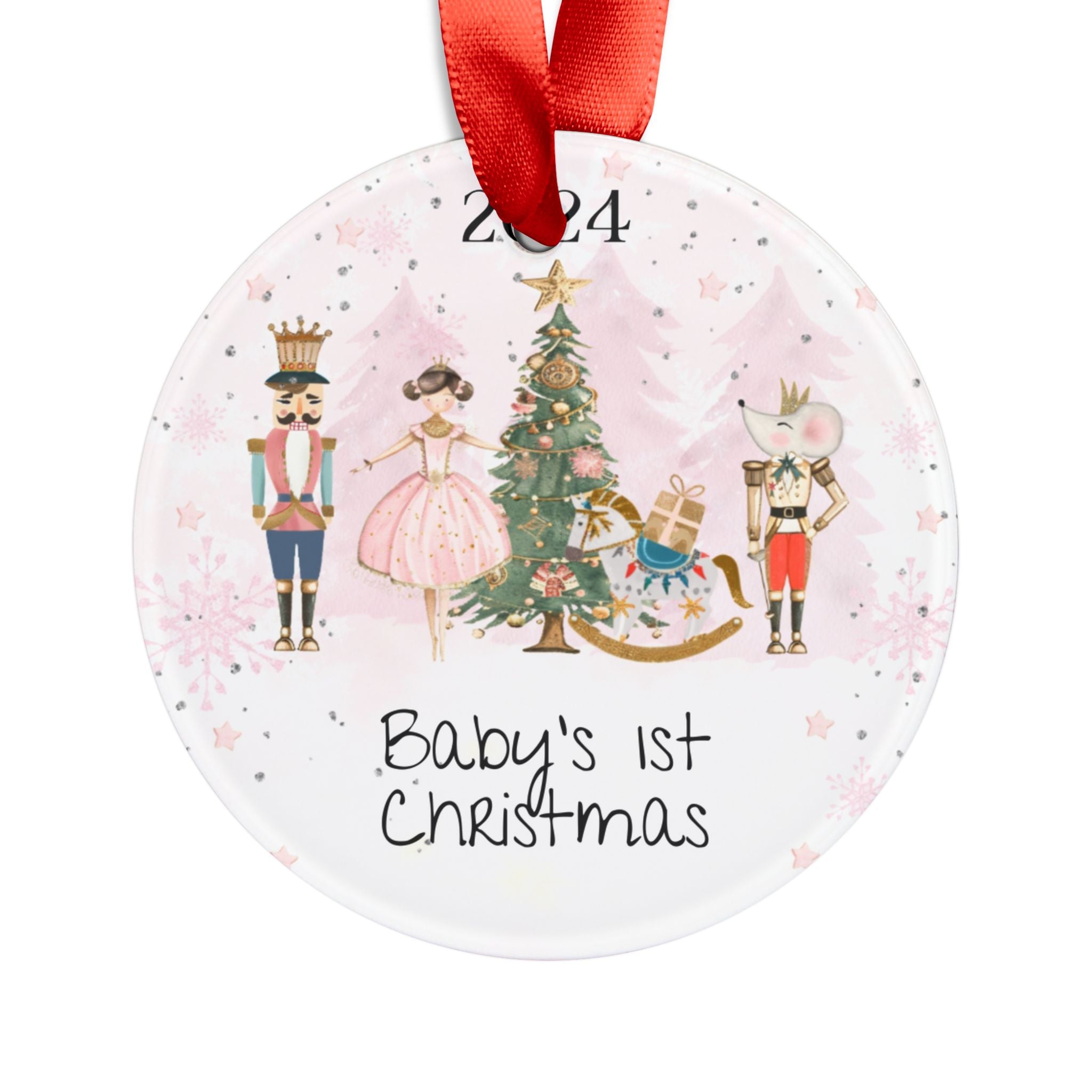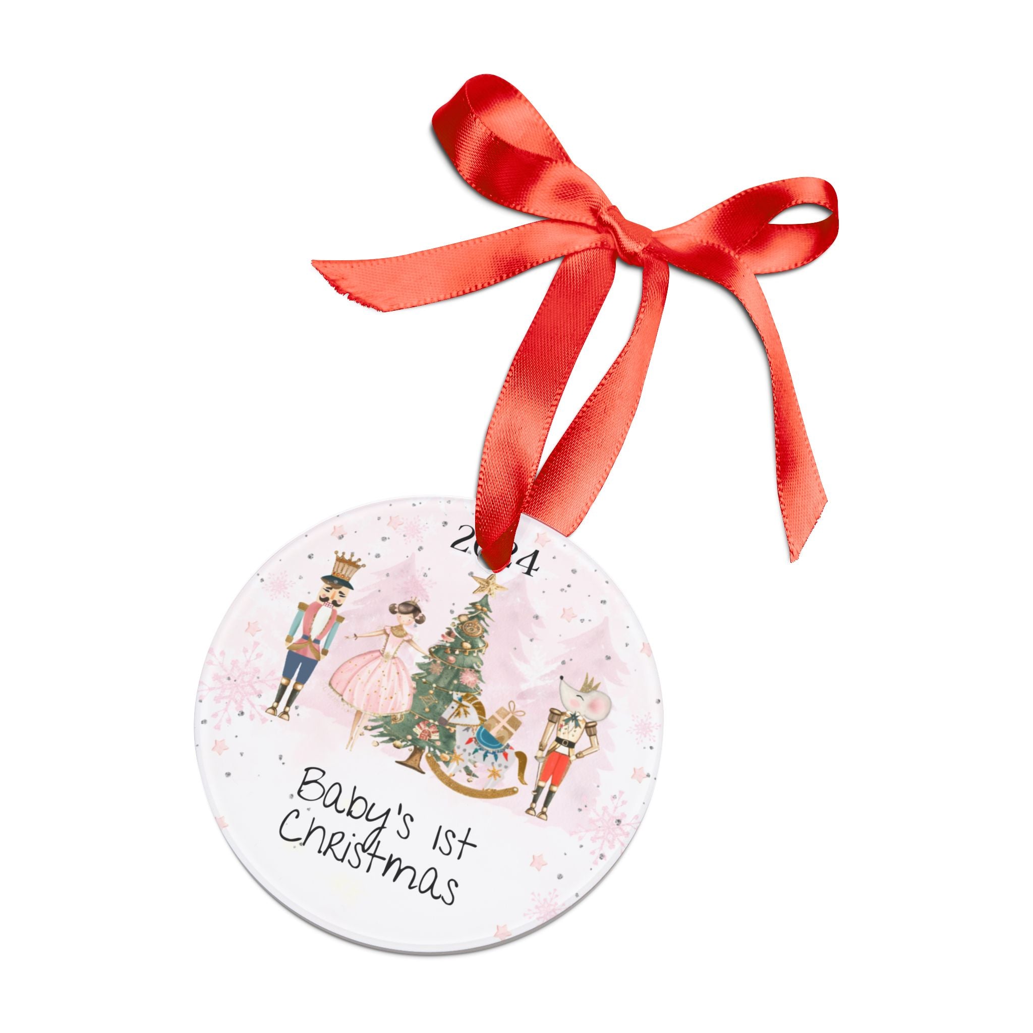 Baby's 1st Christmas (Pink Nutcracker) Ornament with Ribbon