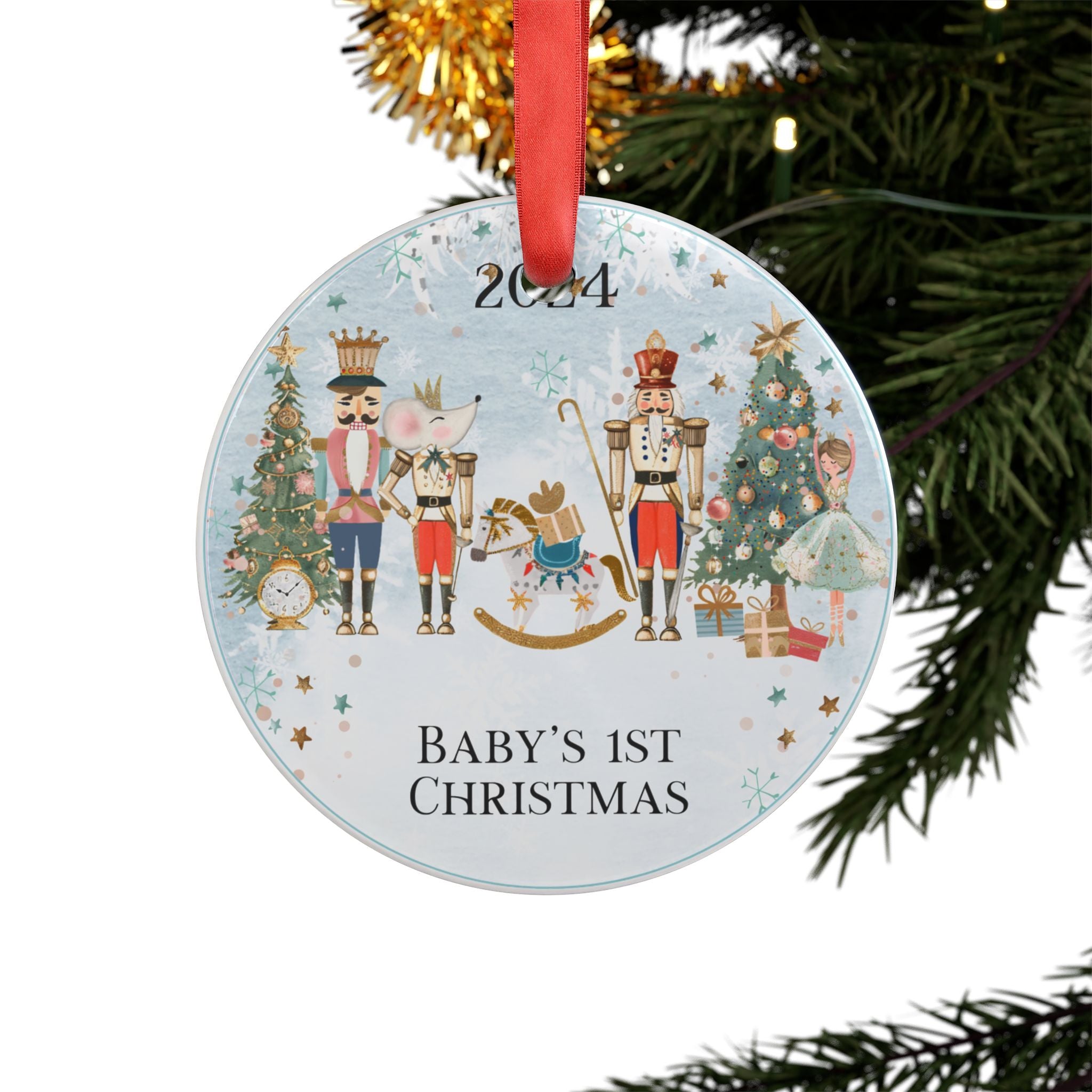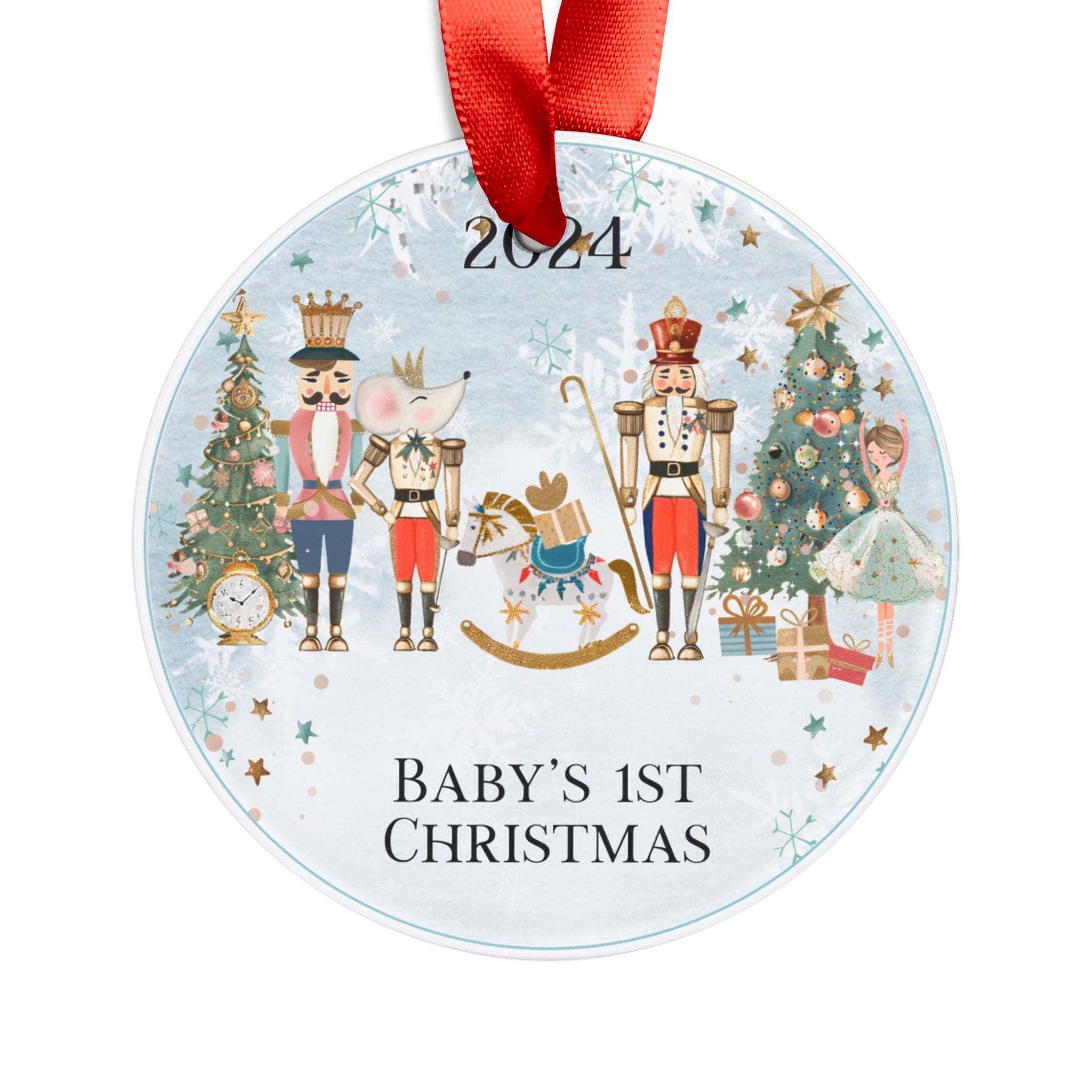 Baby's 1st Christma (Blue Nutcracker) Acrylic Ornament with Ribbon