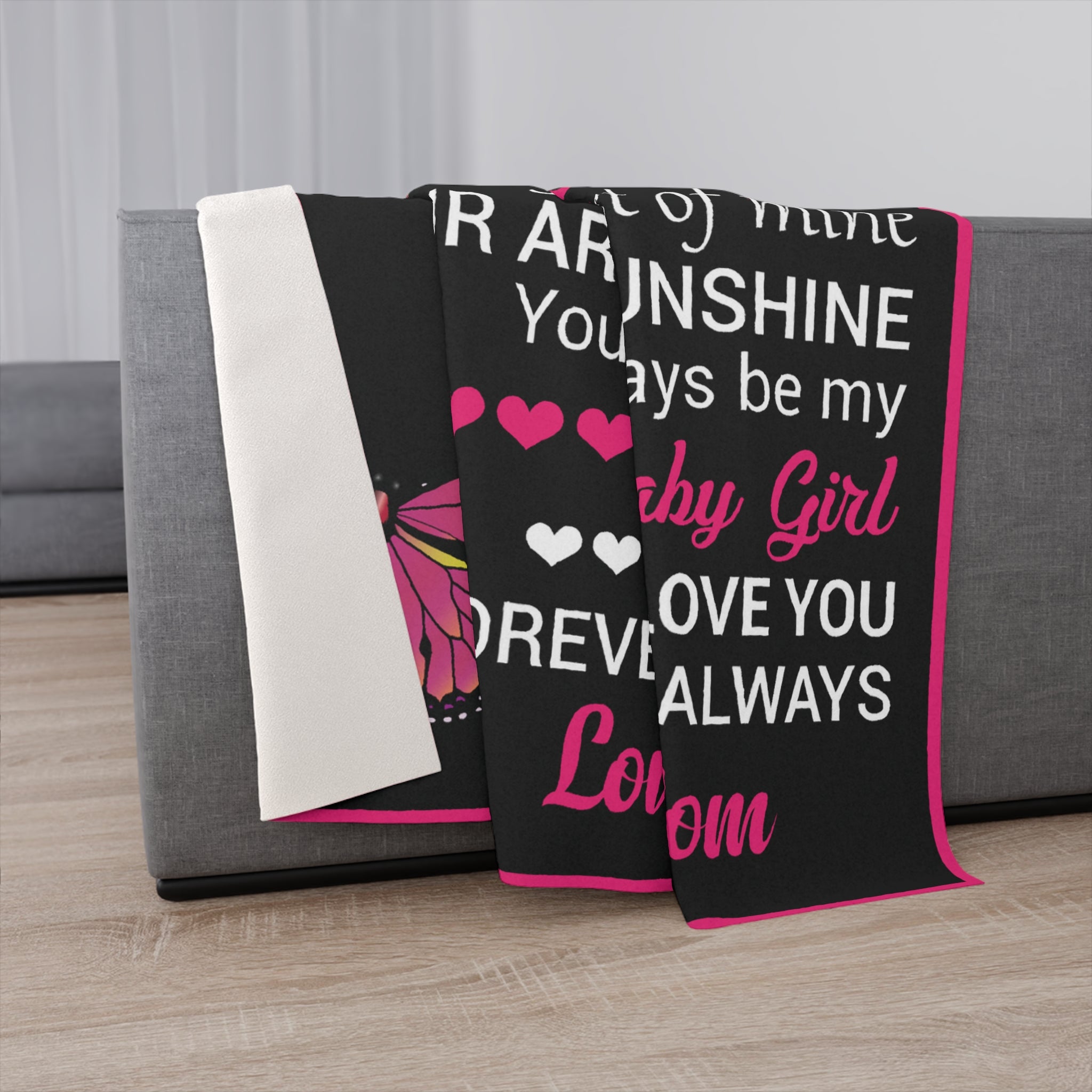 To My Daughter, Love Mom - Butterfly Sherpa Blanket