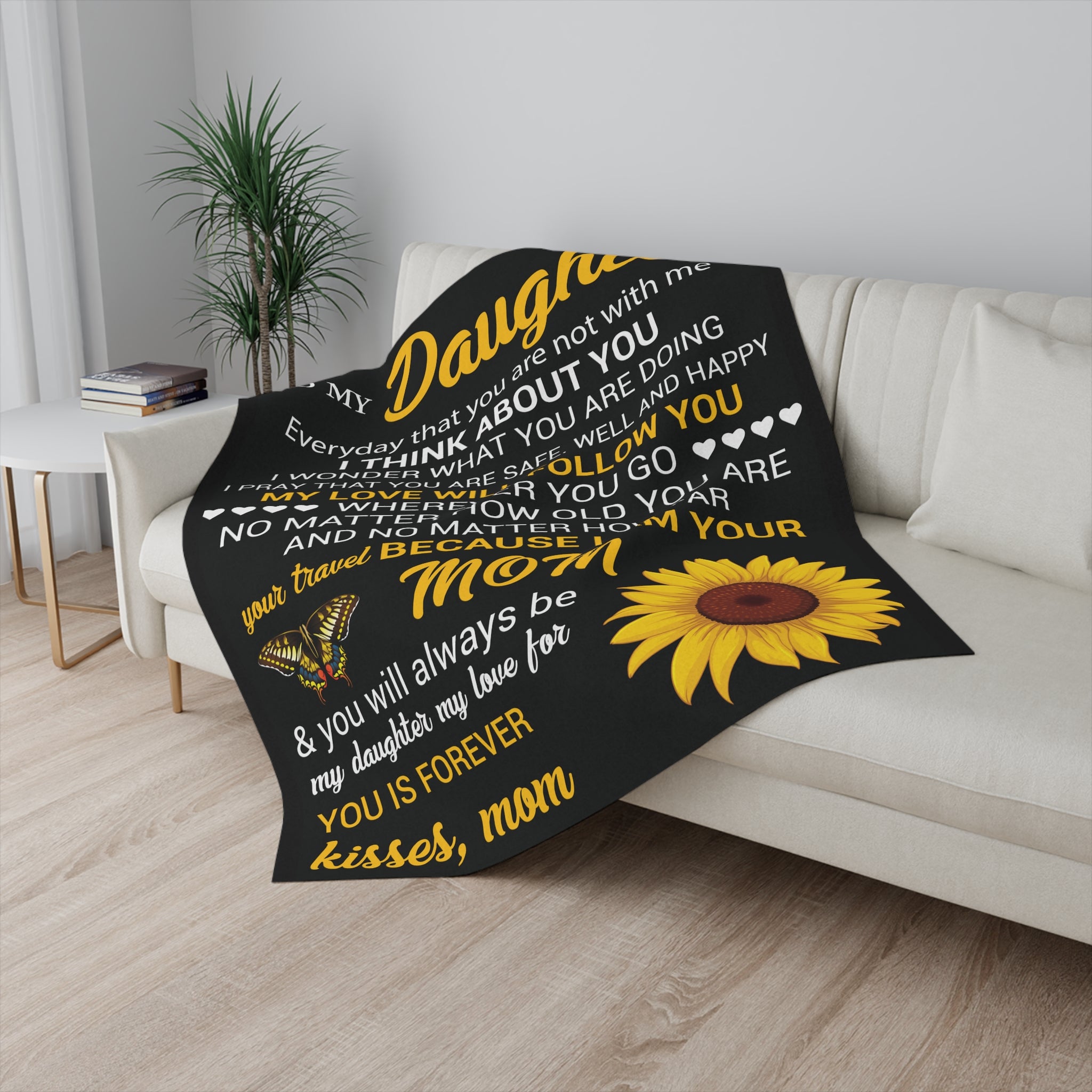 The perfect blanket to show your daughter you love her.  This sherpa blanket will surely warm her heart.  Perfect for chilly nights to curl up with their favorite person (Mom).