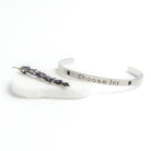 Brazalete inspirador con el título "Choose Joy", en el interior se lee: "Ve a afrontar el día con alegría, Dios te respalda".