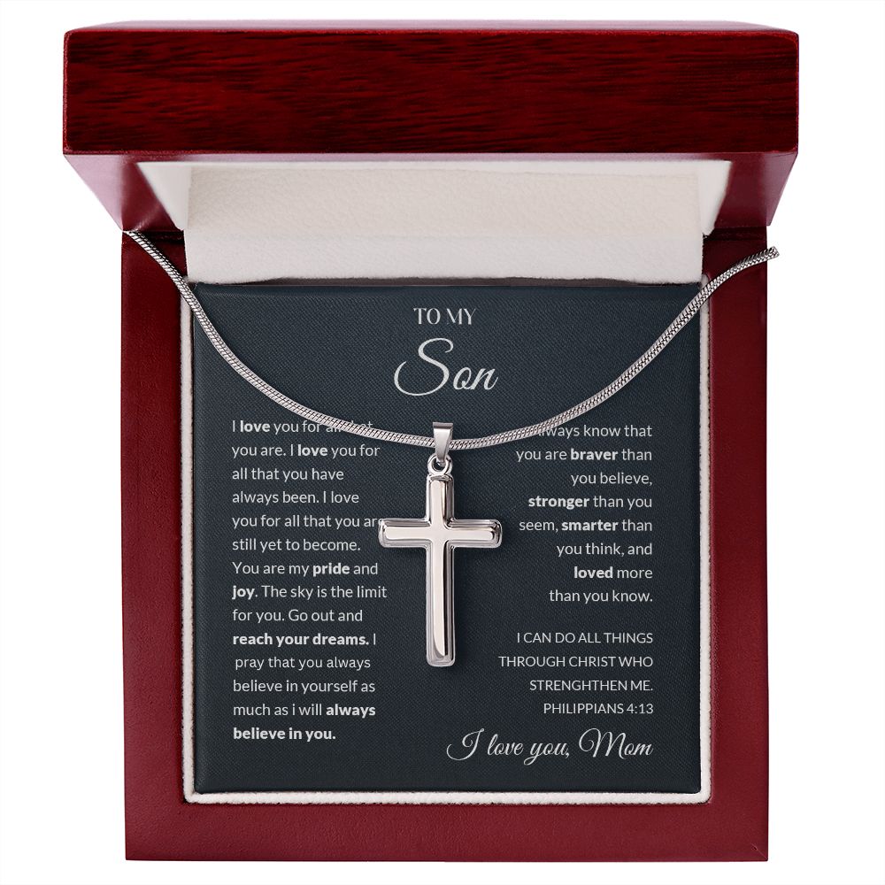 A mi hijo | Te Amo - Collar Cruz de Acero Inoxidable