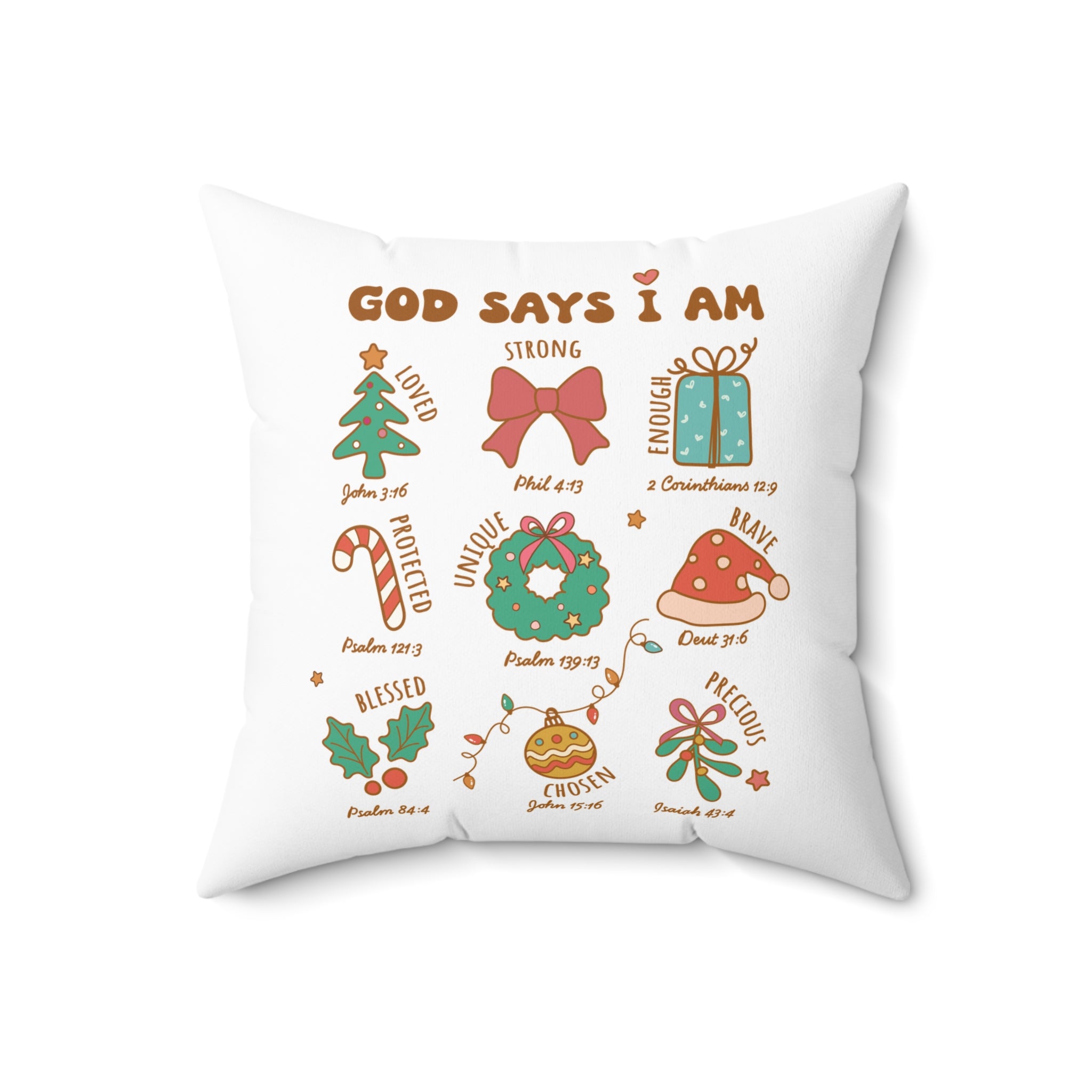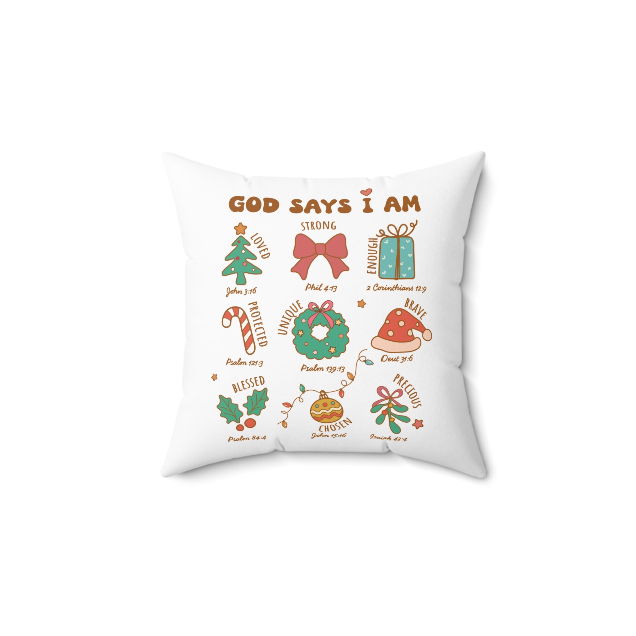 God Says I Am (Christmas Edition) Faux Suede Square Pillow