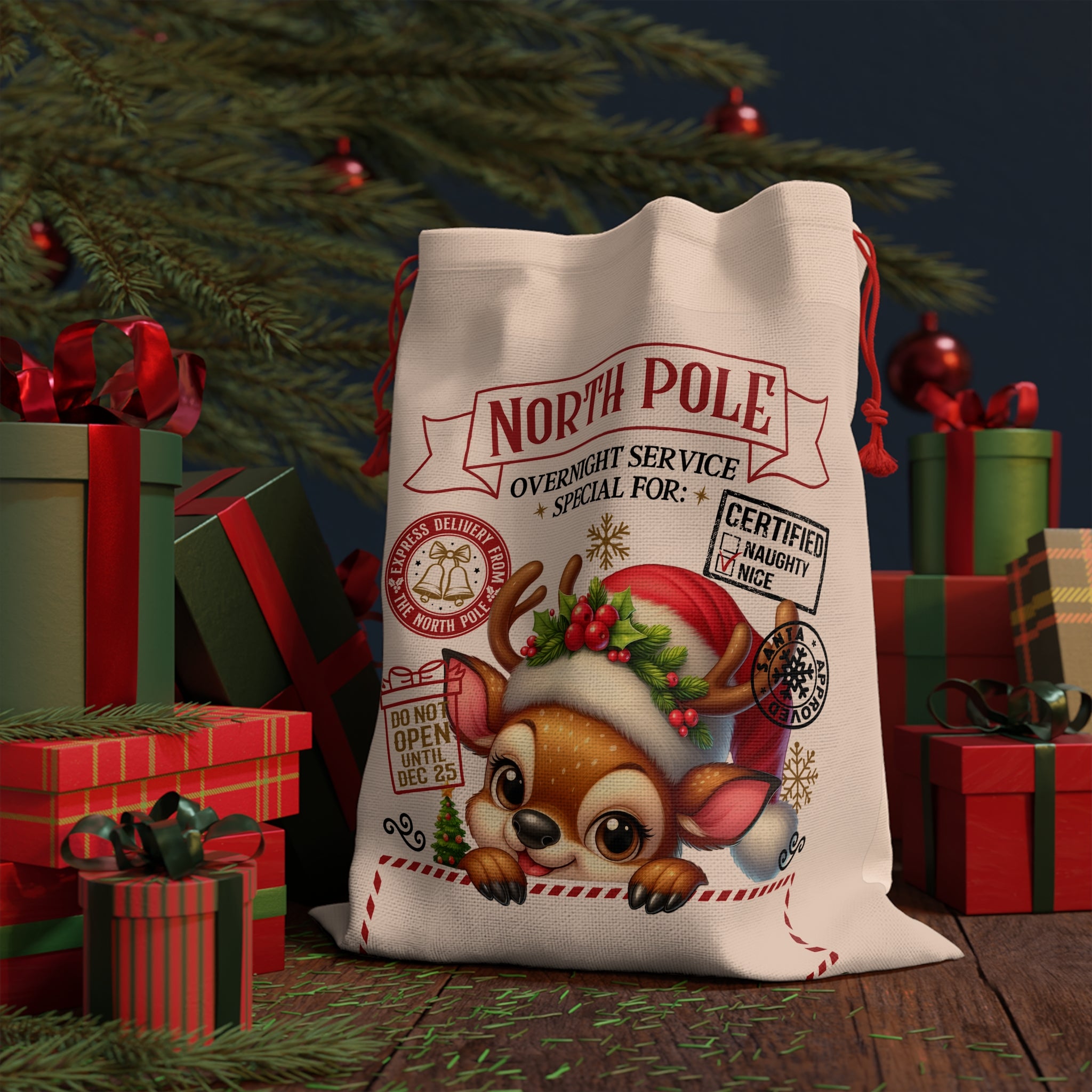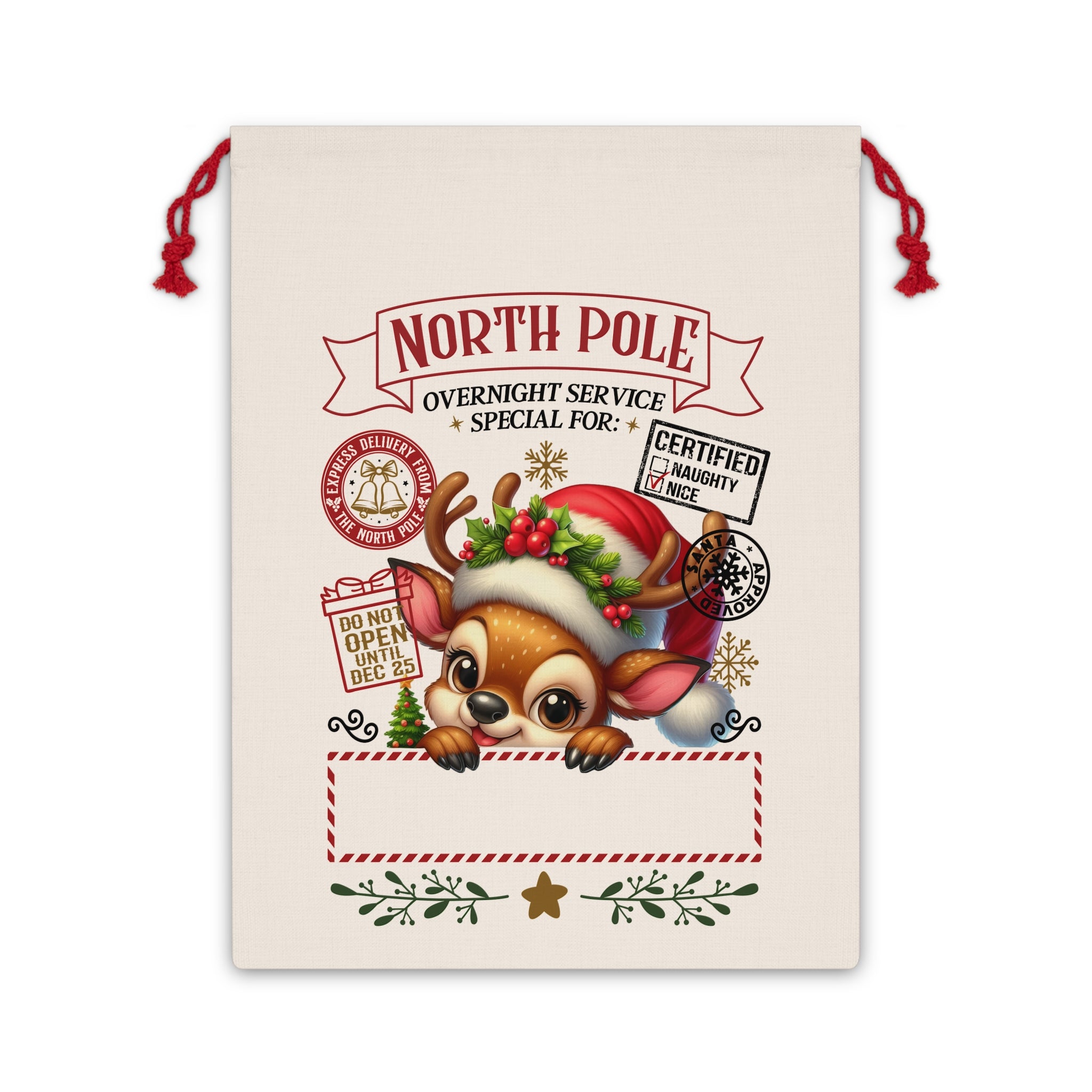 Add a unique twist to gift-giving with a fully customizable gift bag. This gift bag can hold anything from small items and gifts to candy and treats. What’s more, this bag can be used as a trusty laundry bag, a Santa Sack for Holiday gifting, or a handy storage bag.